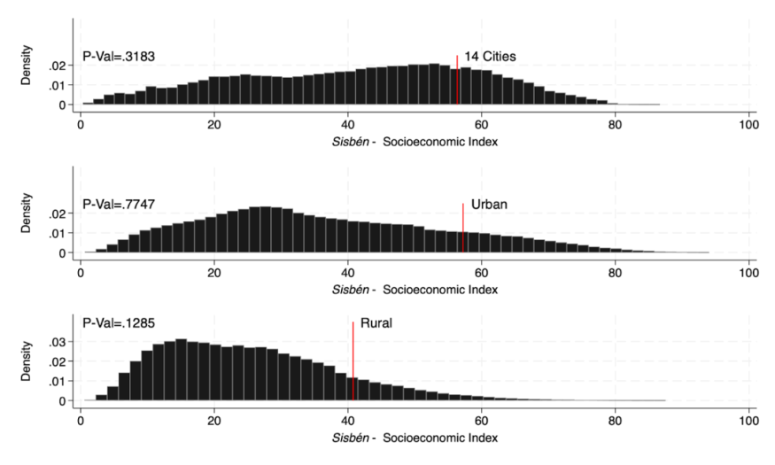 Data on the Sisbén scores are available at the Department Nacional de Planeacion, and the information on the Saber 11 test scores is provided by the Instituto Colombiano para el Fomento de la Educación Superior.
