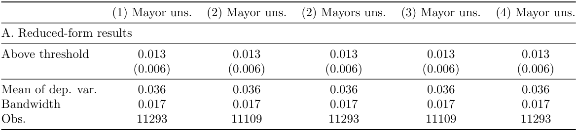 mtitles("Mayor uns." "Mayor uns." "Mayors uns." "Mayor uns.") ///